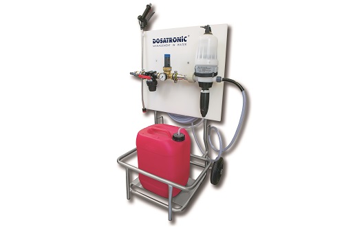 Mobile, compact high-performance disinfection and dosing system for volumetric and mechanical proportional dosing. No power connection required! Any standard water supply can be used. Ideal for surface disinfection, surface cleaning, fertilisation, washing systems, etc.