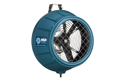 This centrifugal atomizer has a rear-feed blade system that produces billions of tiny, fog-like particles that evaporate quickly. Turbo XEs have an adjustable fog output combined with powerful airflow. The unit’s sump recycles wastewater and conserves water, making this unit great for use in drought-prone areas. The XE Hanging Sump uses a float valve to maintain the water level in the tank, a submersible pump to send water to the fogging head, and ball valve to control the fogging output.