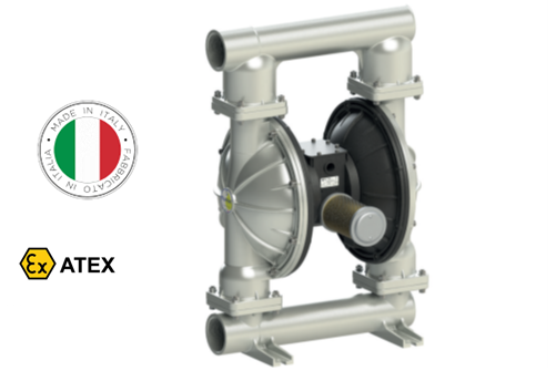 FLUIMAC's ATEX diaphragm pumps are made in PP+CF, PVDF+CF,POMc+CF, ALLUMINIUM or AISI 316.